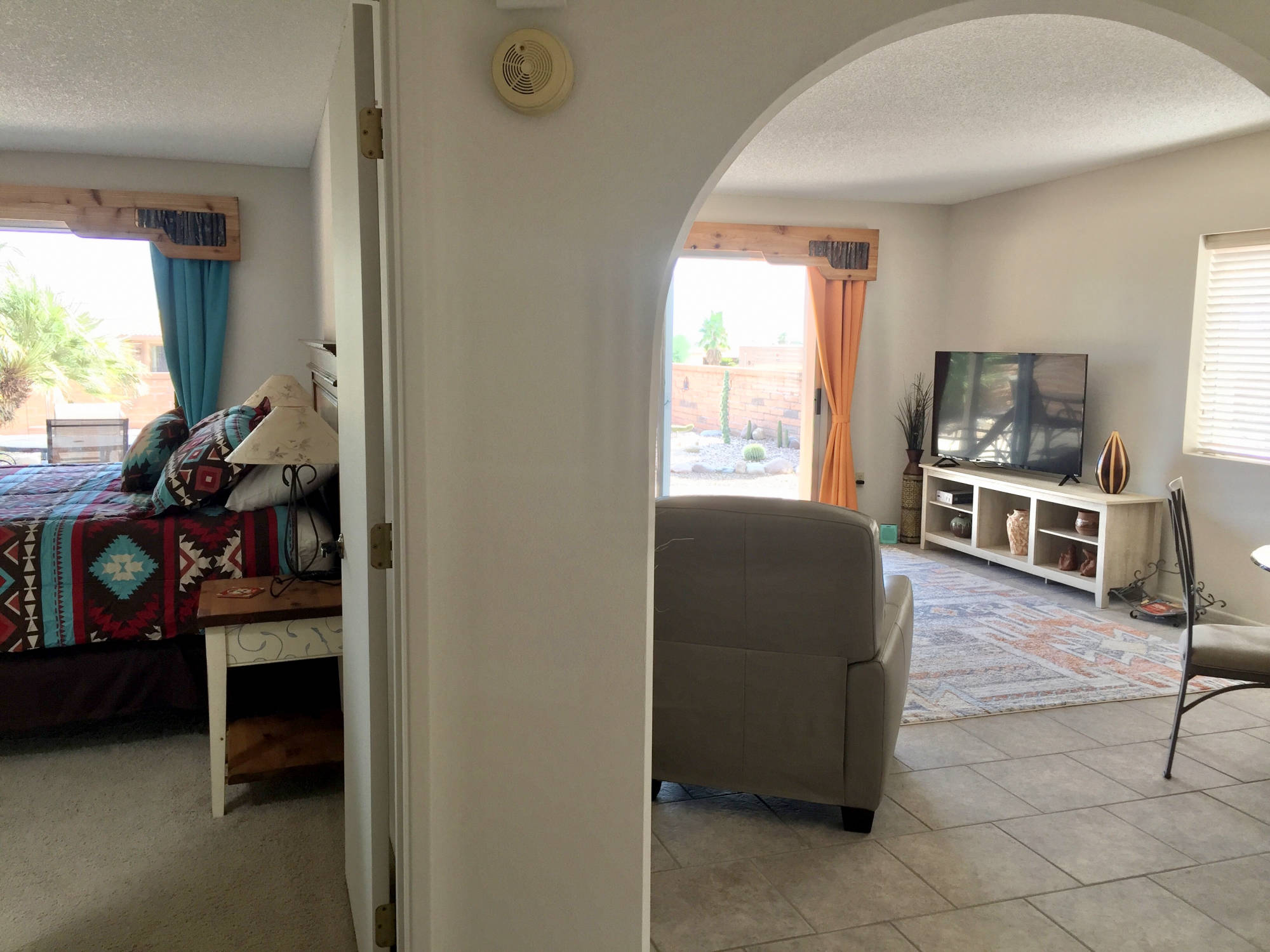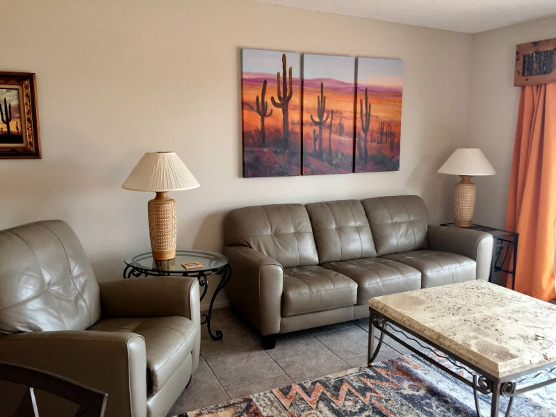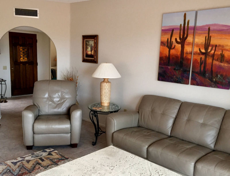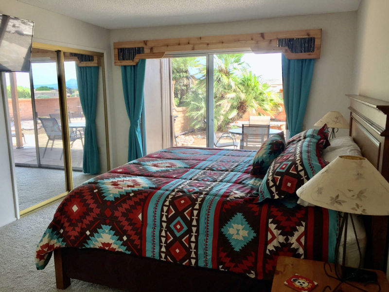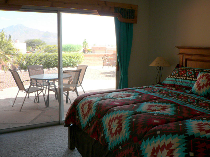 "The sun rising above the Santa Rita’s was a wonderful start to an early day while it was cool enough to walk, sit on the patio, drink morning coffee and get ready for the day. I enjoyed the beautiful starry nights from the patio and standing in awe of a summer rain accompanied by amazing lightening coming from behind the mountains. This home was by far the nicest home in which I have stayed in Green Valley. "